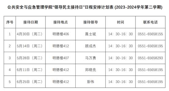 根据本学期时间安排,制定2023-2024学年第二学期“领导民主接待日”日程安排计划表(详见下表):