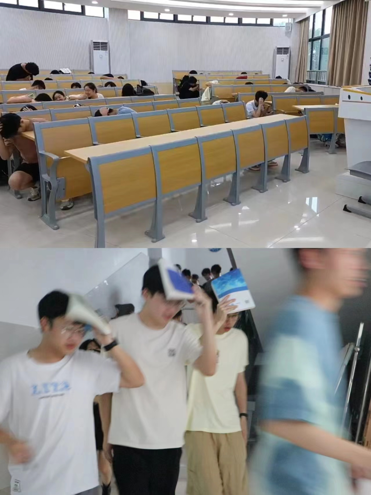 学院党政办主任翟富林带领师生举行了防震应急逃生演练。通过实战演练,突出生命通道畅通在避险逃生和应急救援中的关键作用,宣传应急疏散知识与技能,增强师生应对突发事件的避险能力。