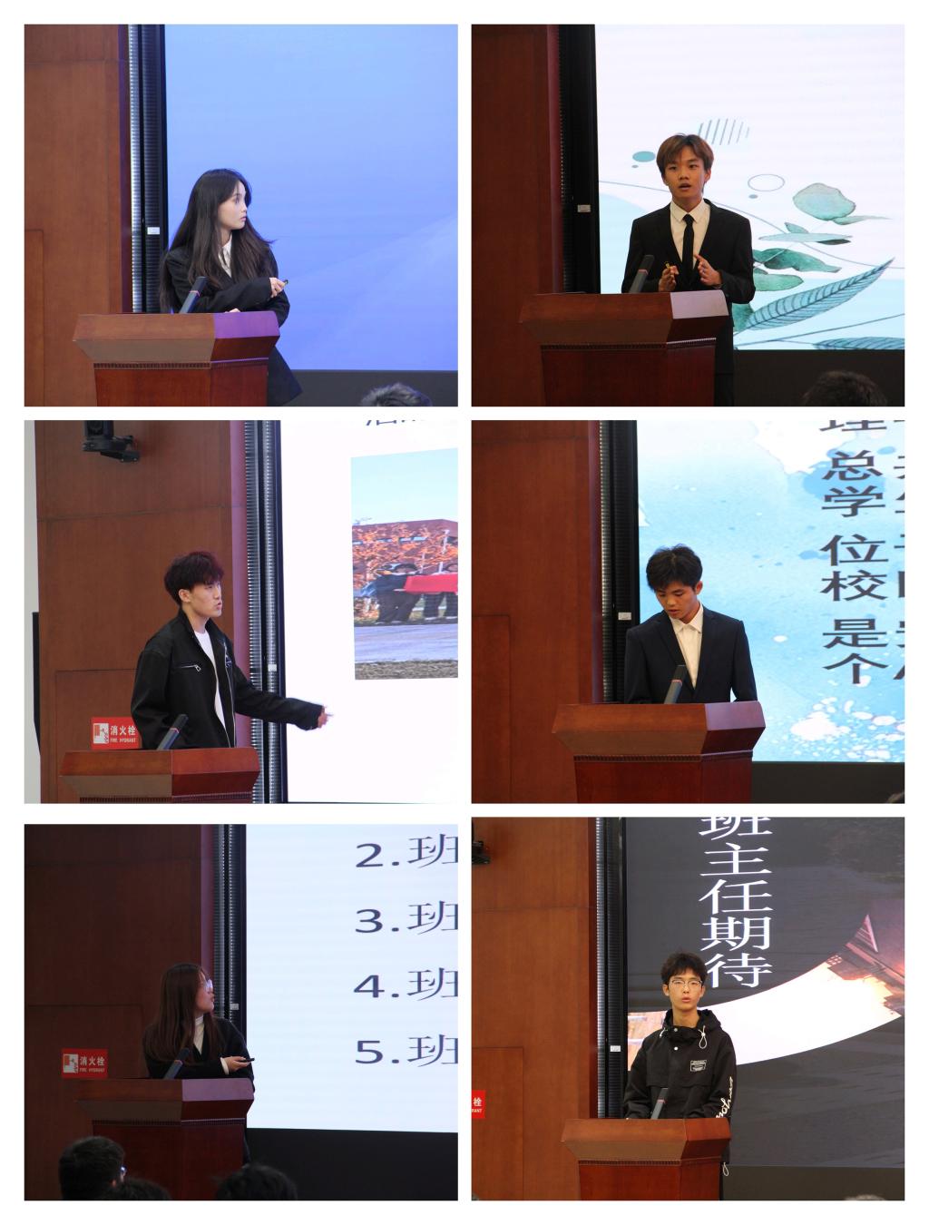 教师代表依次介绍学术背景、研究方向、科研成果、带班构想等情况,凸显每位老师的专业素养和带班理念,为后续的双选提供了丰富的参考依据。学生代表借助精心制作的PPT详细介绍了班级的基本情况、班委组成、班级文化、班级目标、班级荣誉、班级优势与不足、学风建设、发展愿景等,展示了当代大学生的蓬勃朝气与集体荣誉感。