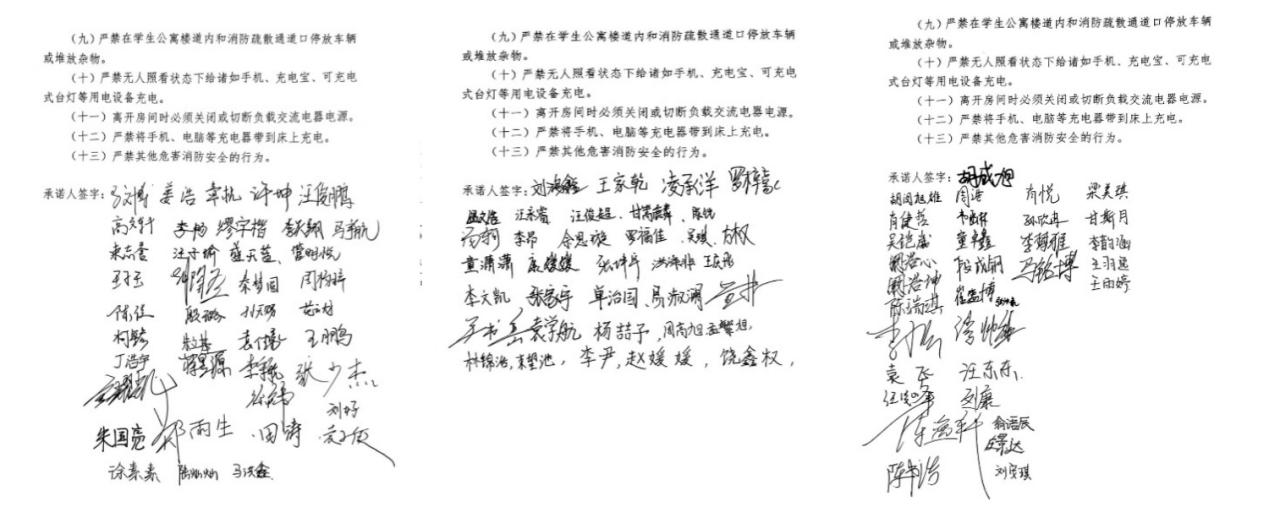 学生签署《遵守学生公寓安全规定承诺书》
