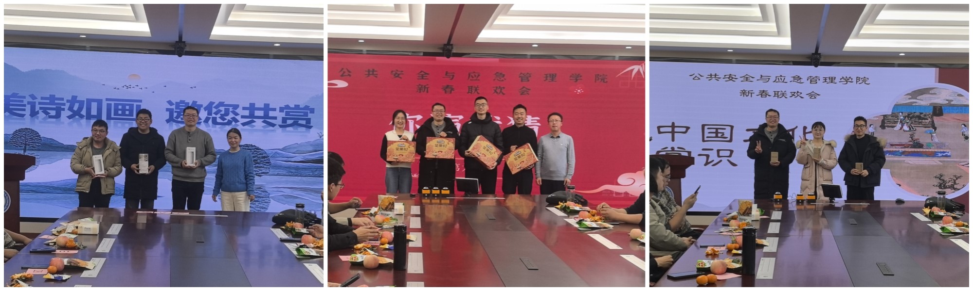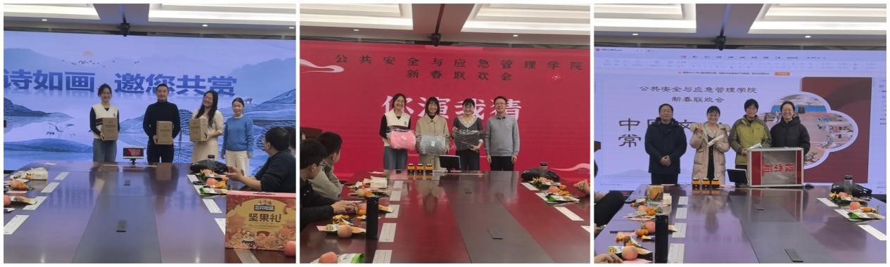 新春联欢会丰富了学院的文化生活,增强了教职工之间的凝聚力,为学院新的一年开启了美好的篇章。纵有千古,横有八荒,前途似海,来日方长,在此祝愿公共安全与应急管理学院的所有教职工在新的一年里所愿皆所成,多喜乐、长安宁。