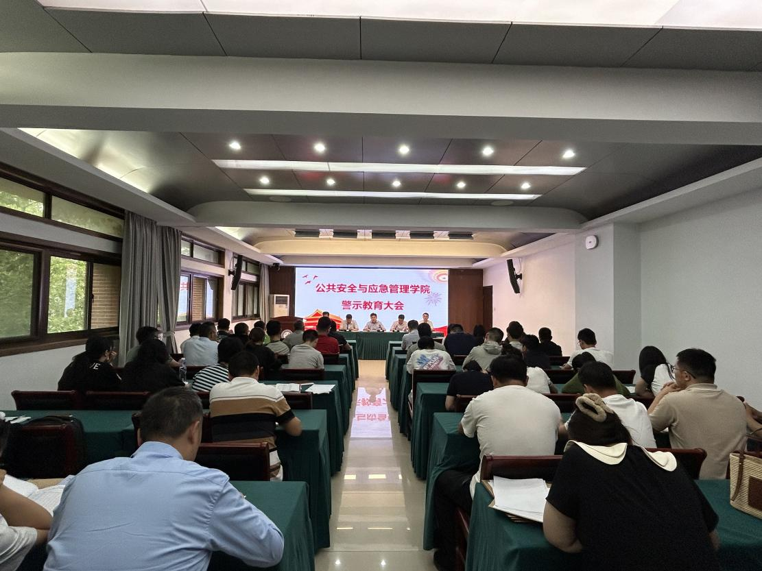 6月12日下午,公共安全与应急管理学院在明德楼第二会议室召开警示教育大会,学习传达习近平总书记关于加强党的作风建设的重要论述、中央层面深入贯彻中央八项规定精神学习教育工作专班关于党员干部违规吃喝严重违反中央八项规定精神典型问题通报和省委常委会、全省及学校警示教育大会有关会议精神和相关文件通知。学院党委书记聂士斌主持会议,学院全体教职工参加会议。