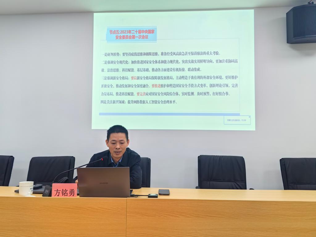 为进一步推动总体国家安全观入脑入心,提升学院师生的国家安全意识与综合素养,11月11日,公共安全与应急管理学院举办百川大讲堂,邀请中共安徽省委党校(安徽行政学院)国际合作部主任方铭勇教授作辅导报告。学院党委书记聂士斌主持会议,师生代表参与学习。