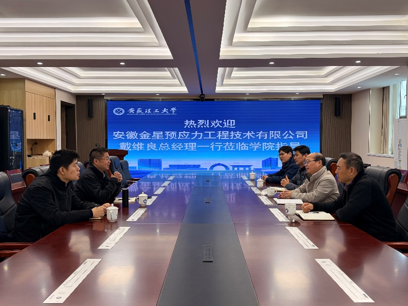 3月20日上午,金星预应力工程技术有限公司总经理戴维良一行到访安徽理工大学公共安全与应急管理学院,双方围绕产业人才培养与科技成果转化等领域进行了深入交流,共同探讨校企合作新模式。