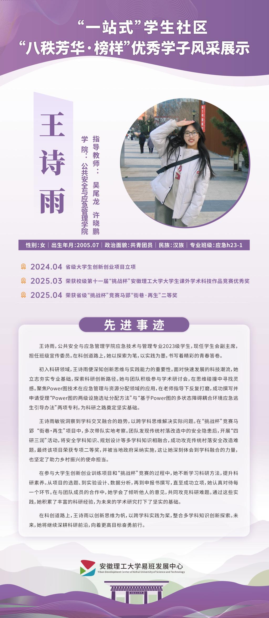 “八秩芳华•榜样”优秀学子风采展示-王诗雨