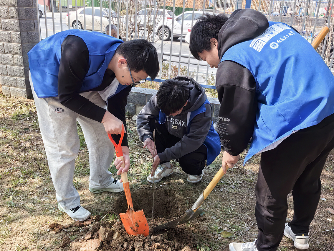 通过植树活动,学院将“奉献、友爱、互助、进步”的新时代雷锋精神落到实处,提高了同学们绿化养护的意识。用爱心浇灌,让更多绿色拥抱春天。