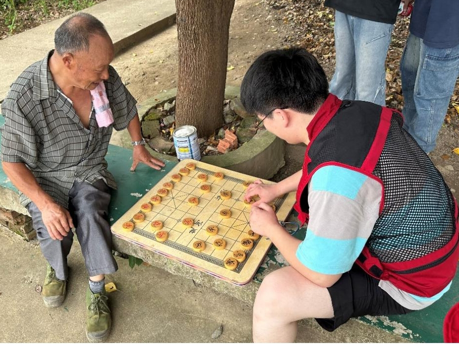 志愿者和老人一起下象棋