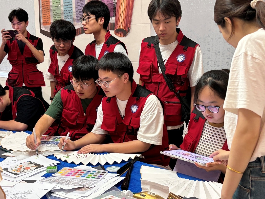 7月11日,志愿者们在明德竹扇非遗研学基地,零距离接触了非遗项目,亲身参与明德竹扇的制作过程,领悟植根于王氏折扇的艺术之美。这里的匠人们利用各式竹料,制作出一把把风格独特的明德竹扇,可谓是“方寸之间显风骨”。在传统与现代的交汇中,折扇之两面恰似阴阳相辅,一面承载着悠久的历史,一面映照着当下的生活。在科技飞速发展的今天,折扇承载了更为丰富的精神文化内涵。明德竹扇非遗研学基地的体验,无疑是一次深度探索与传承中华优秀传统文化的珍贵旅程。在这里,志愿者们不但能够亲眼目睹且亲手感受竹扇制作的高超技艺,还在不知不觉中受到其背后浓郁文化底蕴的熏陶,达成了对制扇技艺和文化的传播与弘扬。