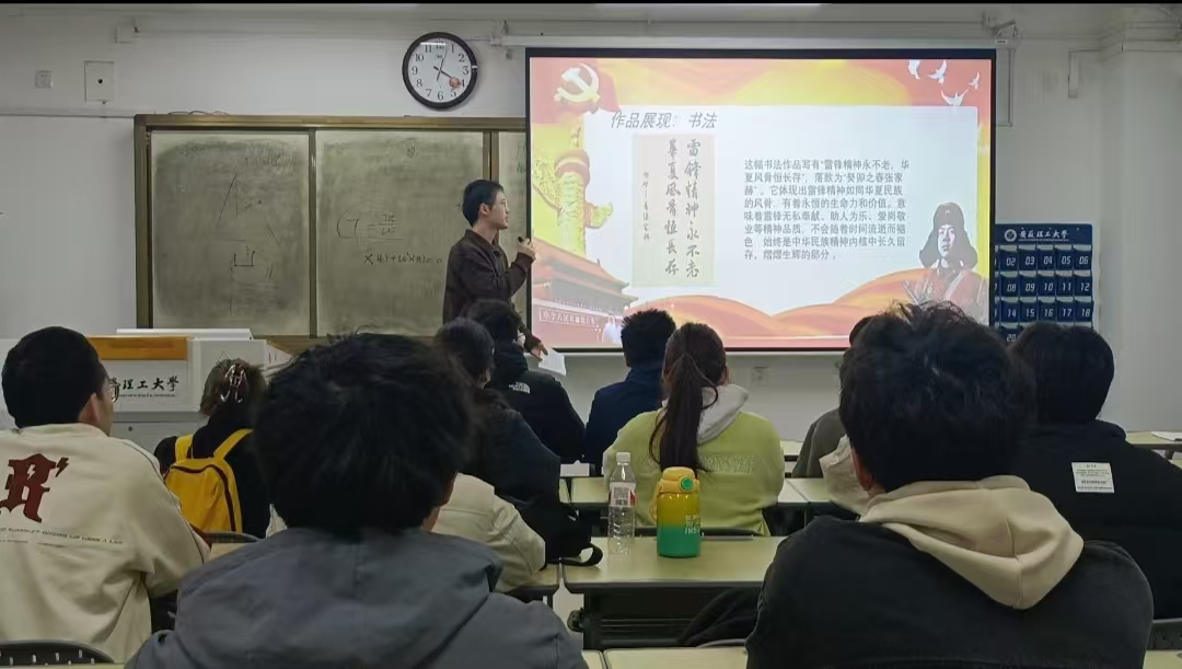 活动开始,团支部书记杨祖全首先带领全体同学重温了雷锋帮助战友、关心群众、勤俭节约的感人故事,深深触动了每一位同学的心灵,展示了弘扬雷锋精神的艺术作品,从剪纸、书法、手抄报等多种艺术形式中了解了雷锋可亲可敬的生平事迹,领悟了雷锋精神的时代意义。