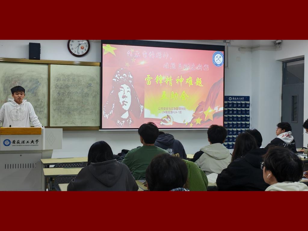 历史川流不息,雷锋精神代代相传。为更好践行“奉献、友爱、互助、进步”的志愿精神,继承中华民族的传统美德,深刻领悟雷锋精神内涵,促进学生在互帮互助中共同成长,2025年3月13日,应急h24-1班举办了以“传承雷锋精神,难题互助启新程”为主题的共解成长烦恼互助会活动。此次活动由团支书饶鑫权主持,全体学生踊跃参与。