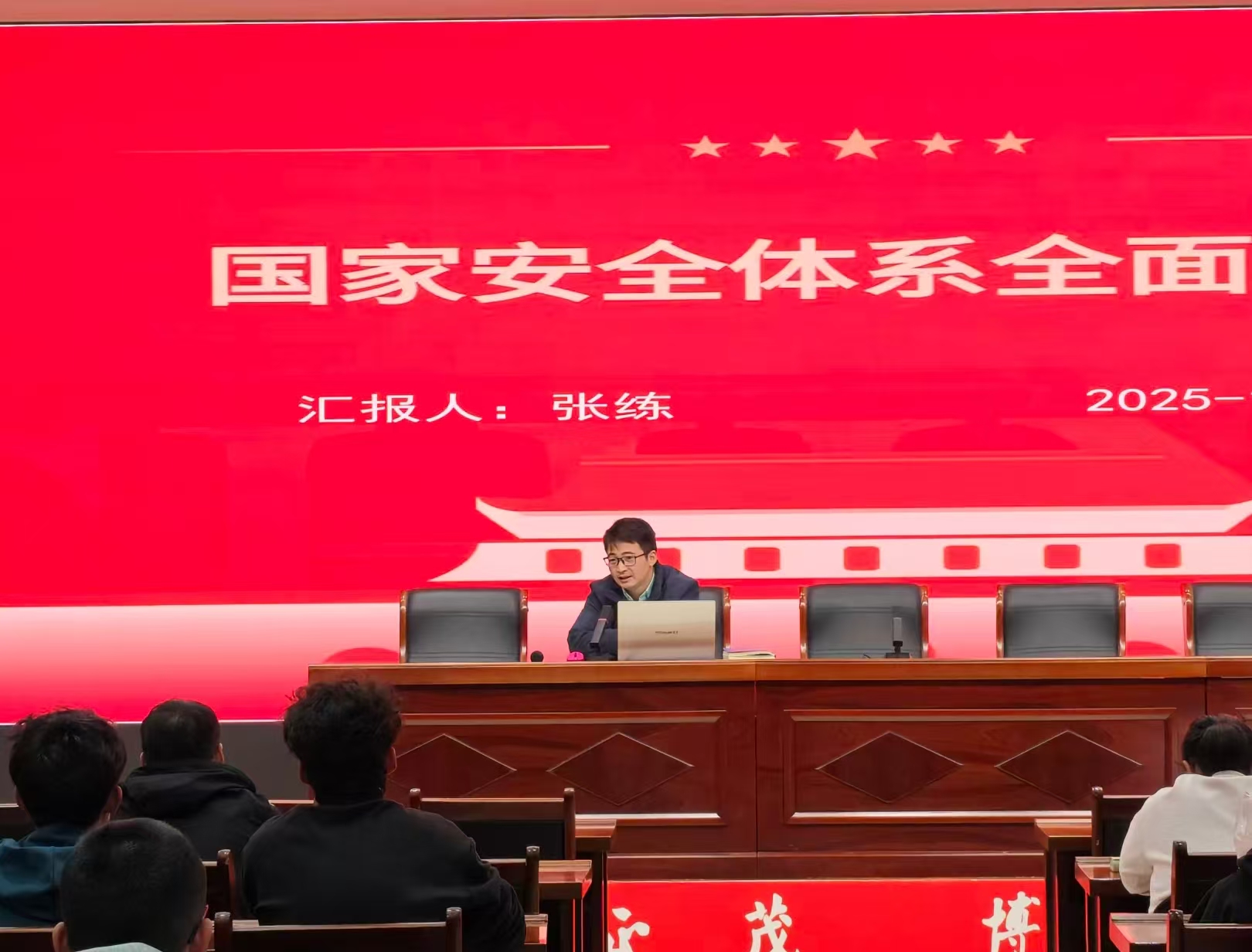 讲座伊始,张练以身边事例为切入点,用网络信息安全等与学子人身安全紧密相关的案例展开讲座。接着,张练循序渐进、以小见大,对国家安全体系展开全面解读,从基础理论阐释、政策法规宣讲、多维安全体系构建以及未来发展方向等多个角度,为学子们细致解答“什么是国家安全体系?”“为何需要国家安全体系?”“大学生如何了解国家安全体系?”三大核心问题。张练多次强调,作为公共安全与应急管理学院学子,需关注国家安全领域突出挑战与风险预判、了解国家安全法律体系框架及政策部署、主动承担维护国家安全的责任。讲座结尾,张练真诚地表达了对学子们用知识和技术报效国家的期待,引发全场共鸣,现场响起热烈的掌声。