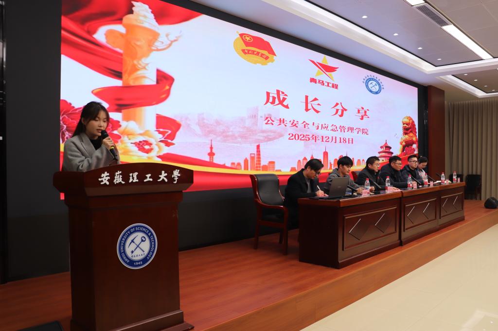 许晓鹏宣读了《安徽理工大学青年马克思主义者培养工程实施办法》等文件,2023级安全工程1班李佳璐同学进行成长分享。