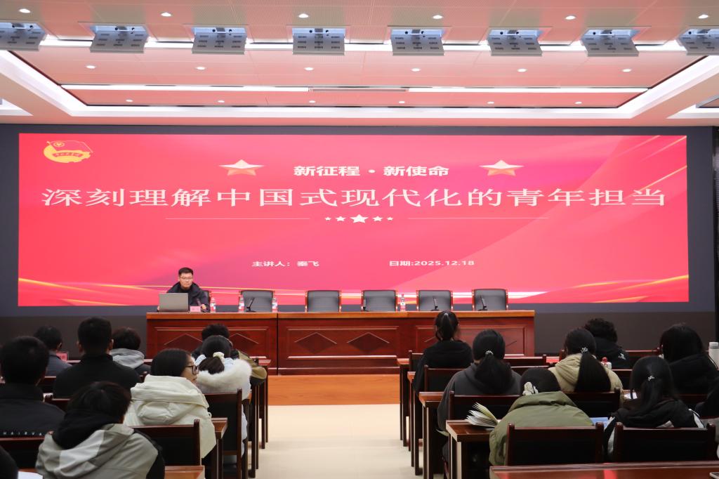 仪式结束后,秦飞以《新征程·新使命——深刻理解中国式现代化的青年担当》为题讲授了第一课。