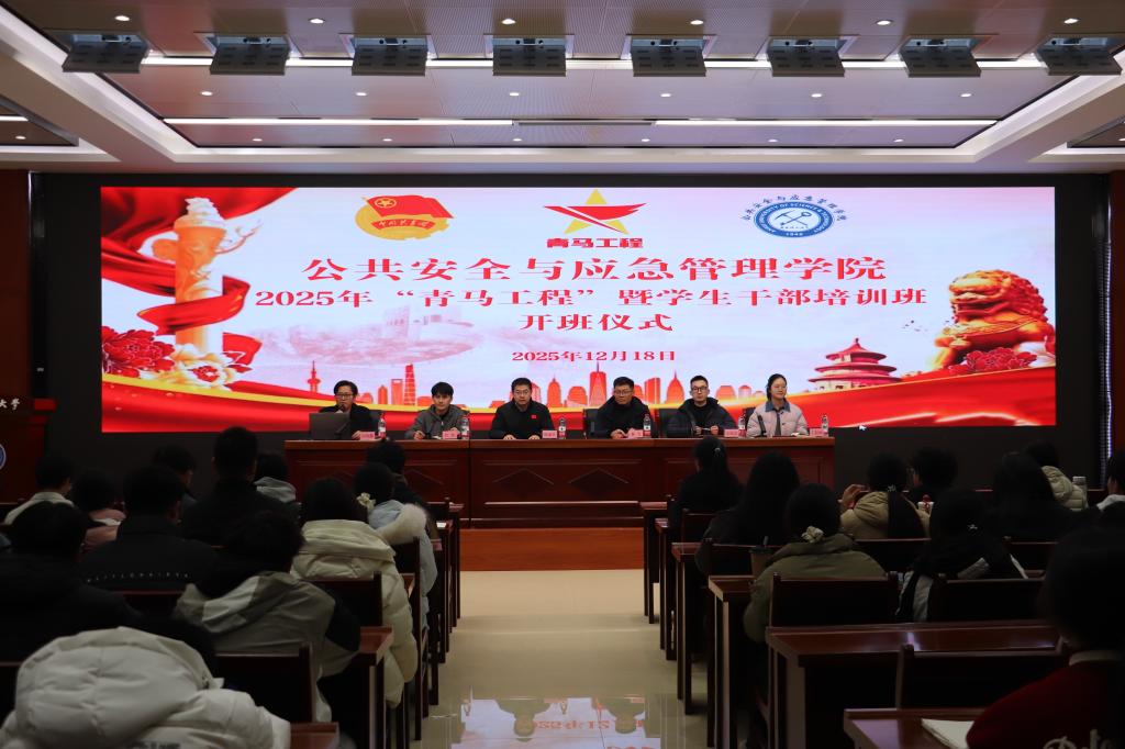12月18日,公共安全与应急管理学院2025年“青马工程”暨学生干部培训班在念艰楼三楼会议室开班。院长顾成杰,公共卫生学院团委负责人秦飞,院团委负责人许晓鹏,办公室副主任代领,辅导员吴尾龙、丁茹栩,全体青马班学员,院第三届学生干部等百余名师生参加开班式。