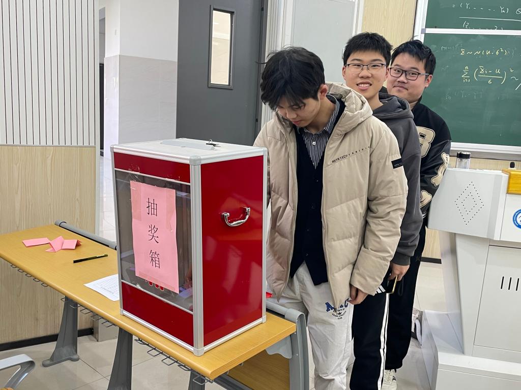 “青灯共学,幸运有礼”活动以晚自习签到打卡抽奖为核心形式,精心筹备了洗衣液、抽纸、笔记本等实用物品作为奖品,以正向激励引导学生主动投入自主学习。活动有效点燃了学生的参与热情,自觉恪守学习纪律,在沉浸式学习中沉淀积累,充分展现出学生高度的自律意识与求真务实的良好学风,为班级学习氛围注入了强劲动力。