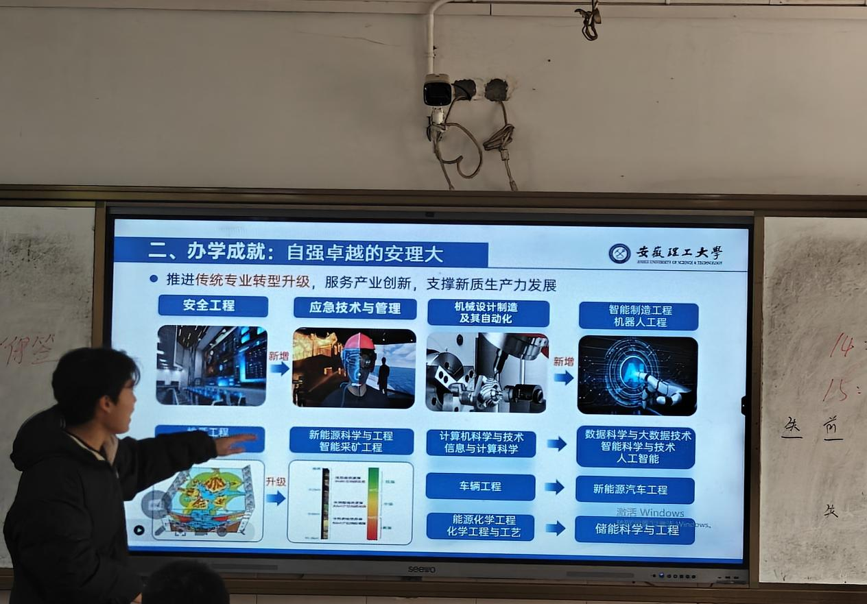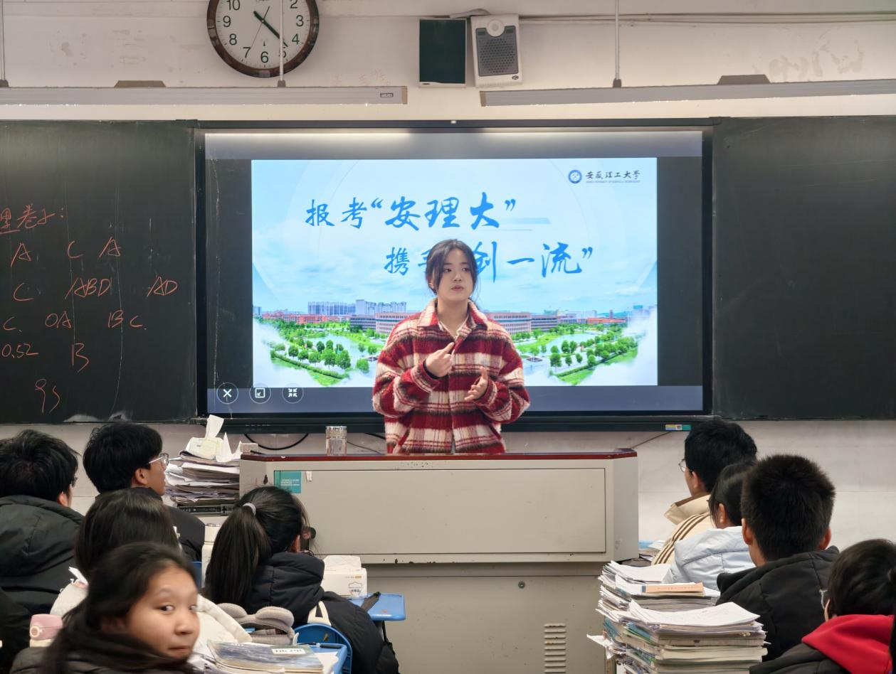 3.实践内容:重返合肥市第十中学,以“我为安理代言”为题,赴一场青春接力的实践之约。我通过PPT和视频,向学弟学妹们讲述了安徽理工大学建校80年的辉煌成就,分享了办学特色,展示了安全工程等专业的学科优势,进行了面对面的交流与答疑,帮助他们更清晰地规划未来。