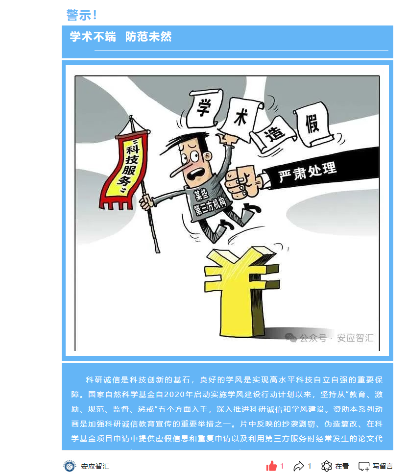 学院充分利用官方网站、微信公众号等新媒体平台,发布了一系列关于科研诚信的宣传图片、文章、视频,形成线上线下相结合的宣传矩阵,营造了浓厚的科研诚信文化氛围。此外,各系部还组织教师集中收看了学术不端警示教育系列动画,通过直观生动的方式,让科研人员深刻认识到学术不端的危害性和可耻性。