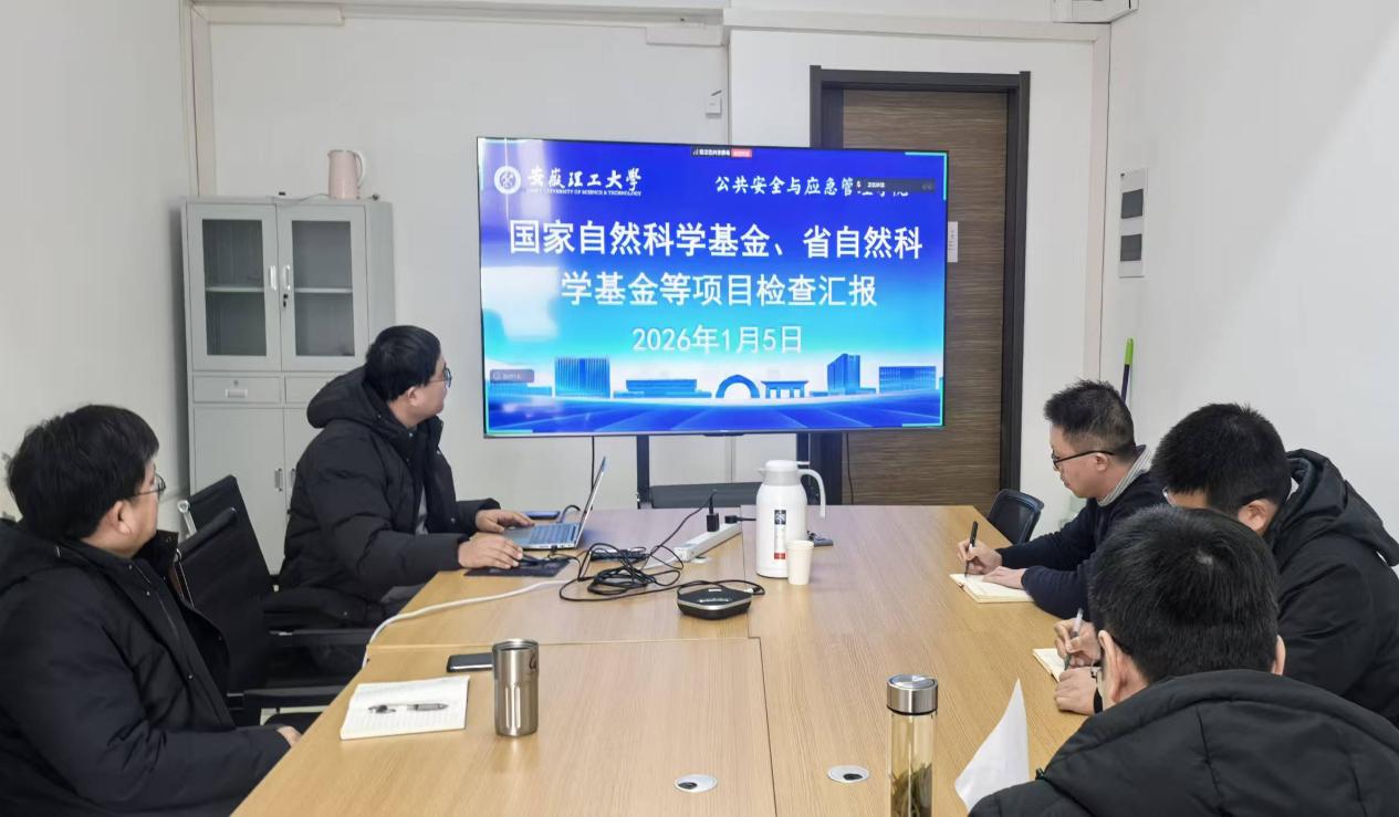 为加强纵向科研项目实施过程管理,提升项目完成质量,2026年1月5日,公共安全与应急管理学院于产教融合楼305会议室,对截至2025年12月31日学院在研的纵向项目,依照安徽理工大学校党政办〔2025〕267号文要求开展检查,学院学术委员会全体成员参会。